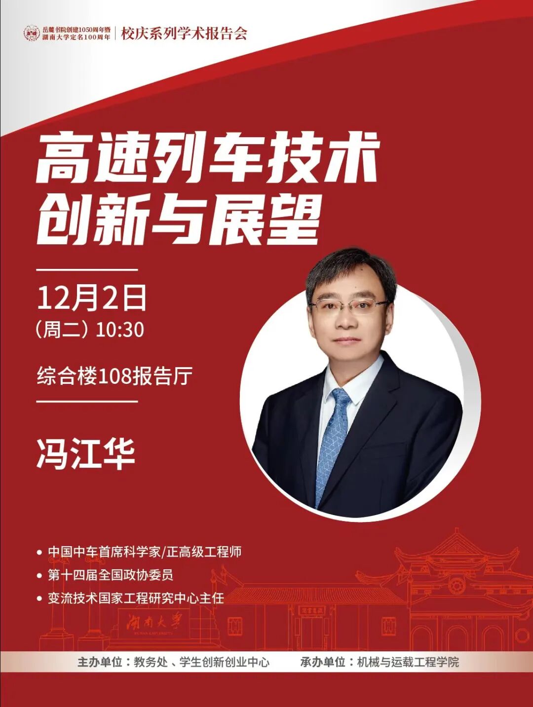 校庆系列学术报告会 | 求是讲堂预告 | 第174期 | 冯江华:高速列车技术创新与展望