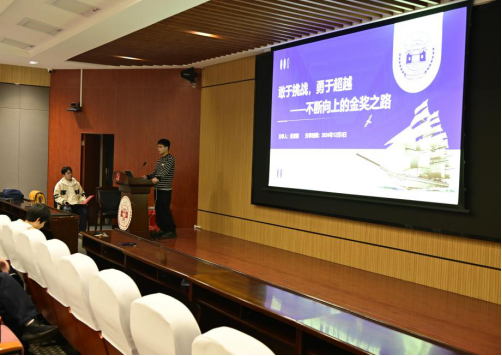 张亚朋以“敢于挑战,勇于超越——不断向上的金奖之路”为题,与同学们分享了其在创新创业领域的宝贵经验。他结合自身经历,从创新大赛解析到参赛经验分享,详细讲述了参赛动机、参赛策略以及最终实现全国金奖的历程。他分享了备赛过程中从校赛到国赛的每一个关键步骤,包括团队建设、PPT制作、路演答辩等实用经验,为同学们提供了具体指导。最后,他勉励在场同学勇敢面对挑战,积极参与创新创业实践,锻炼综合能力,为国家创新驱动发展贡献青年力量。