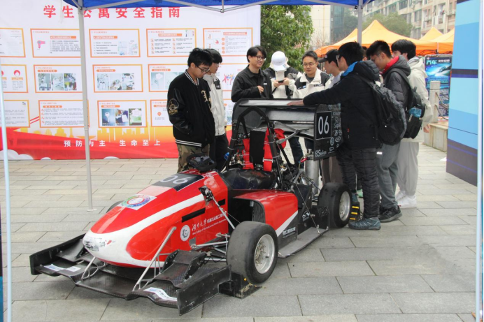 同日,学院在天马篮球场搭建了汽车文化展廊、赛车展以及汽车文化系列小活动,吸引了众多师生的积极参与。以汽车文化小游戏比拼和互动为内容的活动,加深了同学们对汽车文化的了解,增强了同学们之间的交流与协作。