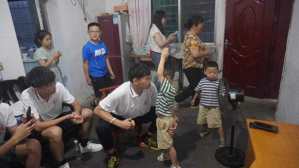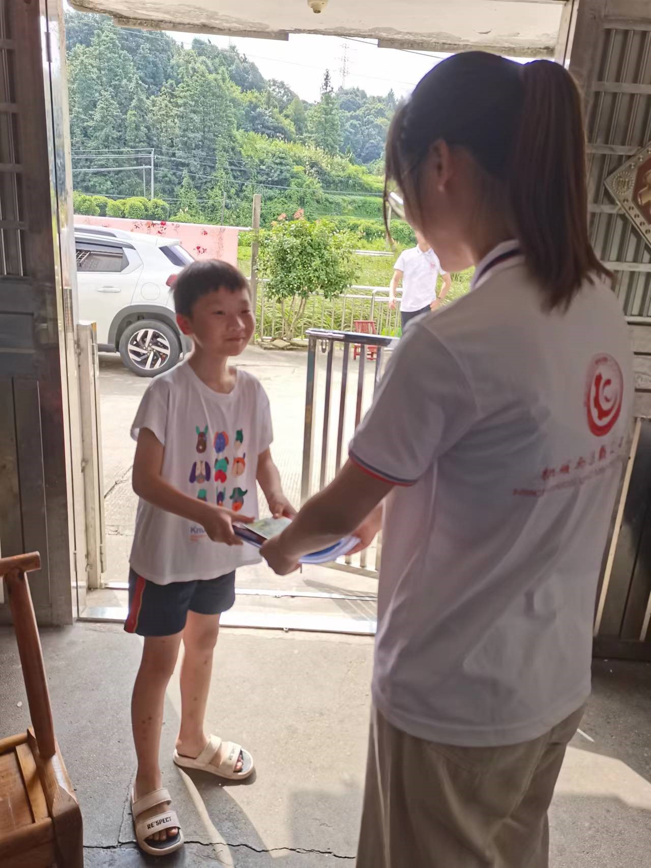 见到家里来人,老人的孙女也探出头来观望,我们就顺势叫她一起来聊天,再询问了学习有关的内容后,队员给小朋友送上了先前筹备的小宝探花