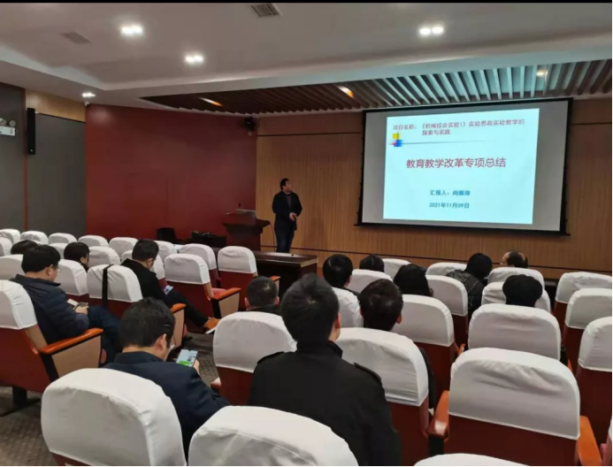 设计系尚振涛老师针对实验教学中思政元素的融入分享了“《机械综合实验1》实验思政实验教学的探索与实践。他结合各实践环节特点,引入适当的案例,在实验教学中融入家国情怀、文化自信、科学精神、工匠精神等元素。
