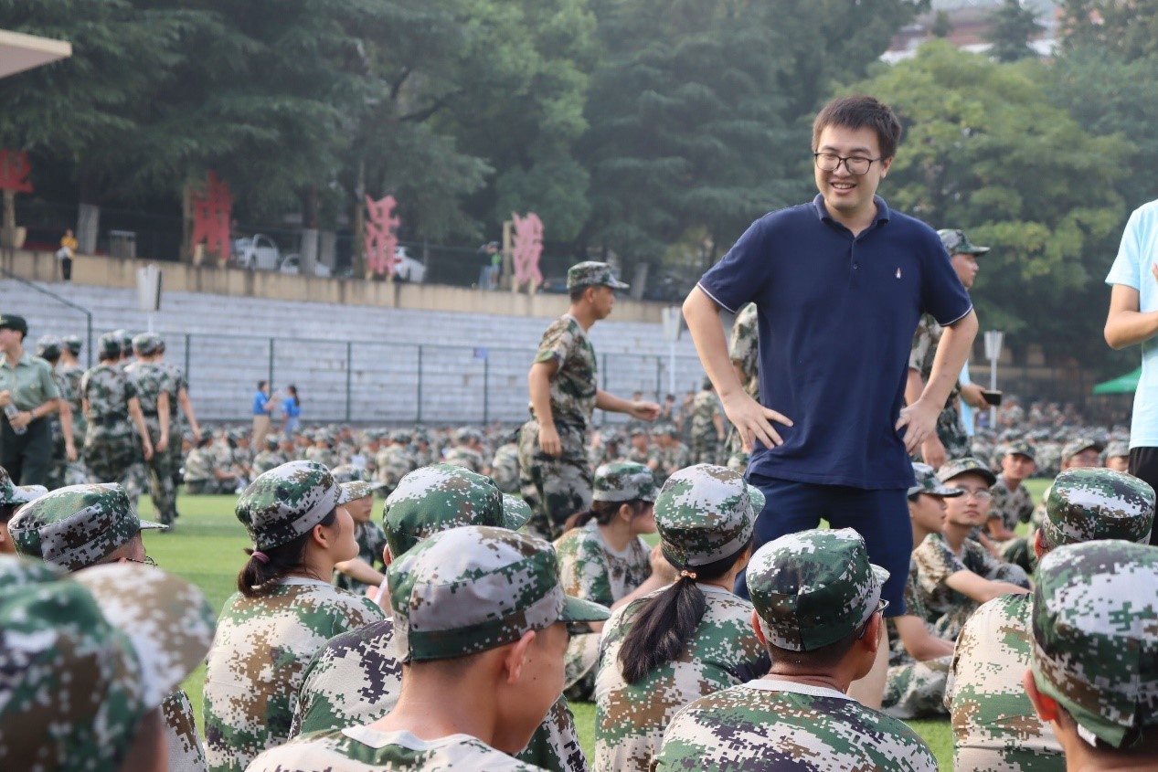 机械院2021级本科新生正在接受军训的考验。机械院各班班主任都高度关注各班新生情况,在工作之余前往训练场地看望新生。