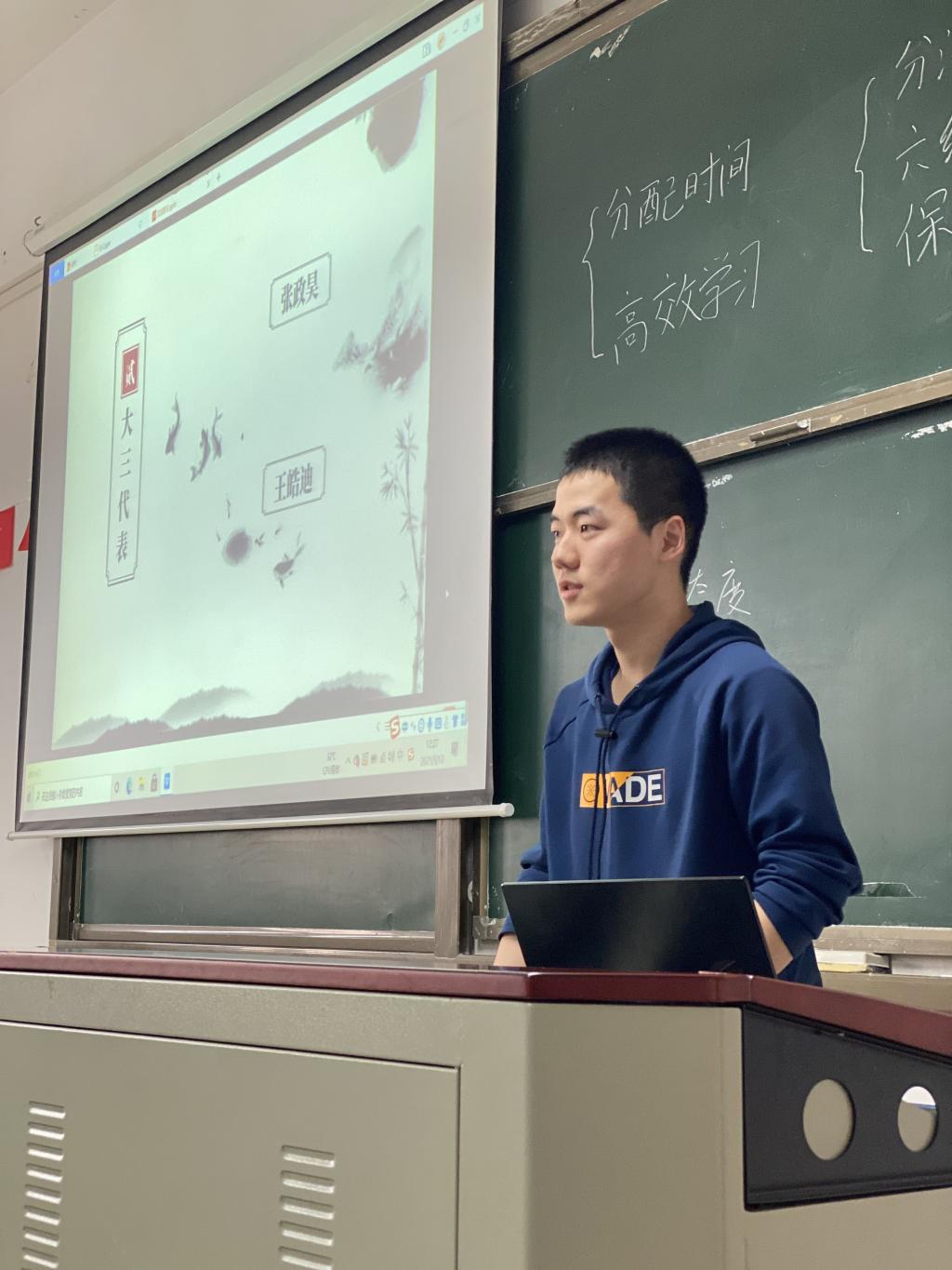 1. 首先是由机械2013班的陈冠宇和张珏晗同学来进行分享。从新生的角度出发,他们都觉得在目前阶段提高学习成绩是很重要的一环。张珏晗强调学习态度对学习效果和成绩的决定性影响,介绍端正学习态度的方法,提出如何培养学习兴趣的困惑陈冠宇则发表对学习成绩之外的综合能力的看法,提出了关于构建学习体系和养成高效学习习惯的疑问。