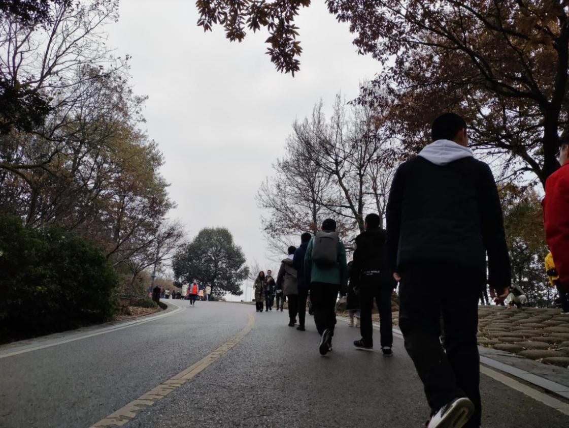 薄雾如膏沐,妆成岳麓冬。初入冬的岳麓山显得有些清冷,但这并不能阻挡同学们登山游览的热情。刚到山脚下,大家已经迫不及待地想见到山中美景,不由得加快脚下步伐,在山路上大步前进着。清凉的山风吹得树林呼呼作响,与同学们你追我赶时的欢声笑语交织在一起,青春的乐章仿佛就在其中奏响起来。