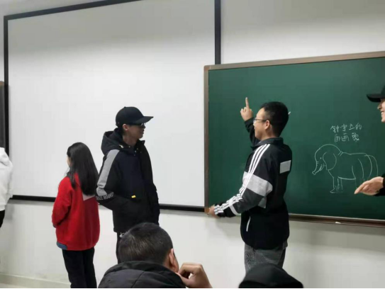 听了钟宇立同学的讲解,同学们画兴大发,拿起画笔,化身为一代马良,我画我心,全场笑声此起彼伏,好似三月暖阳在深秋初冬时节大放异彩。