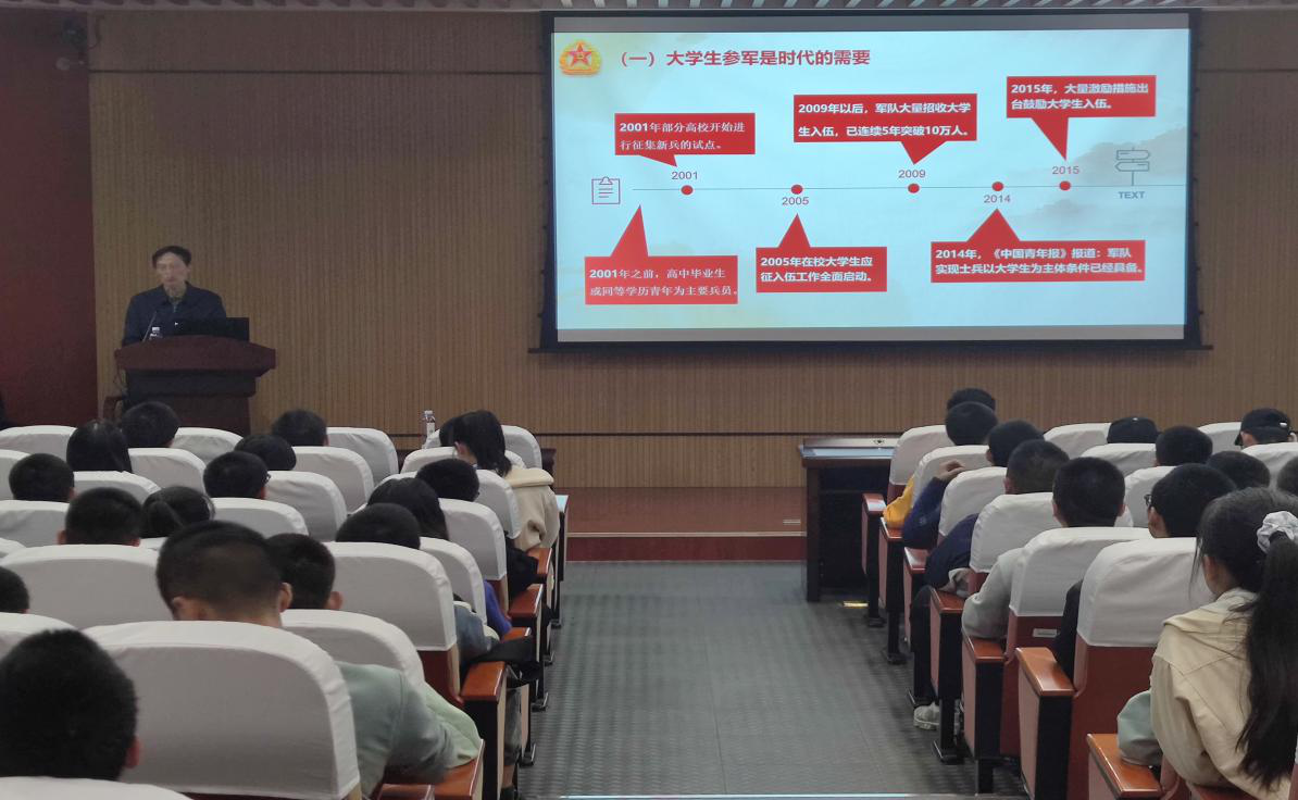作为大学生参军入伍工作试点单位的历程,鼓励同学们向学长们看齐,积极参与,挑战自我。