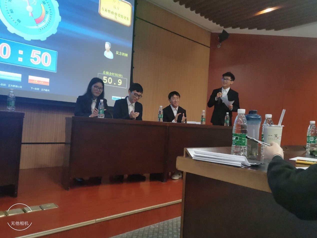 宣讲结束之后,表演赛正式开始,主持人曹友泽为到场同学简单介绍比赛规则及辩题:相似性格和互补性格哪个更能使爱情长久。