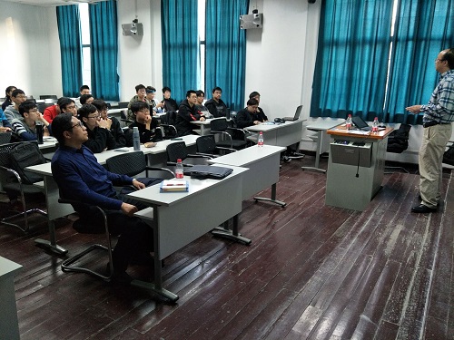 然后是文桂林教授围绕自己的亲身经历作了深刻而有趣的分享指导。他首先说到:“作为班主任,只负责给你们讲道理,我只管你们犯迷糊的事。”这与唐代大文豪韩愈所言“师者,所以传道授业解惑也“有异曲同工之妙,至于日常生活之事优秀的人自然能够合理规划。接着,文教授以自己团队的研究历程为例,劝勉同学要实干、坚持、拼搏,只要有激情,有正能量,就不会埋没个人的聪明,要把时间用在做有意义的事上,学校、各种平台只是辅助,决定命运是要靠自己,要树立长远的目标,着眼于未来才能更好的成就自己。文教授谈起团队的研究成果,滔滔不绝,如数家珍,令人肃然起敬,同学们受益匪浅。