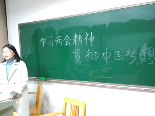 1514班在综合楼441召开主题班会, 班会围绕“学习两会精神,贯彻中国梦想”展开。