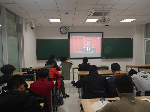 3月5日上午9时,十三届全国人民代表大会第二次会议在北京人民大会堂召开,当天,我院2017级本科生支部组织全体党员、预备党员收看开幕式,认真学习李克强总理的政府工作报告,并展开专题讨论。党支部书记、辅导员郑朝阳同志参会并主持。
