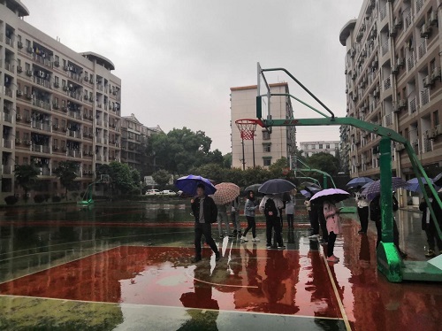 天马公寓2篮球场集合,因为天下着雨,青苗们都是打着伞在等待着活动的开始。集合完毕后,就由各组小组长带队前往公交车站乘车前往活动地点毛泽东第一师范。