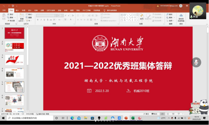 优秀班集体创建中期答辩顺利进行,为了保证疫情防控,本次答辩改为线上进行。会议邀请谭想老师、李迪老师和方婷老师为本次答辩比赛的评委,由各班负责人参加本次答辩,在多方共同努力下,本次答辩顺利完成。
