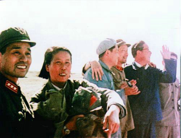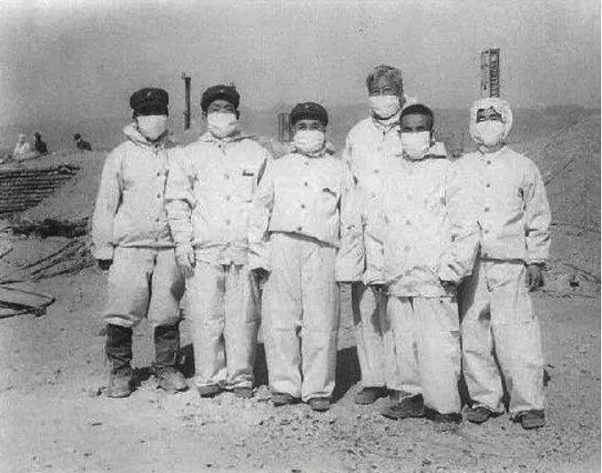 1966年程开甲(左一)在氢弹爆炸试验现场