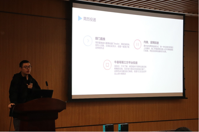 路江炜师兄签约了北京字节跳动公司。本次秋招拿下字节,腾讯,百度,美团等10家互联网企业offer。师兄以他自身的经历,为我们详细说明了互联网公司的秋招过程,首先是简历投递,主要有三种方式,包括部门直推、内推和官网投递、牛客等第三方平台投递;其次是笔试,需要我们多刷leetcode;第三部分是技术面,会考察你的实际能力;最后就是HR面试,回答的时候保持一种互相尊重的态度就ok。师兄的分享为以后想从事互联网工作的同学,提供了一个清晰明确的方向,也让更多同学了解了互联网工作。