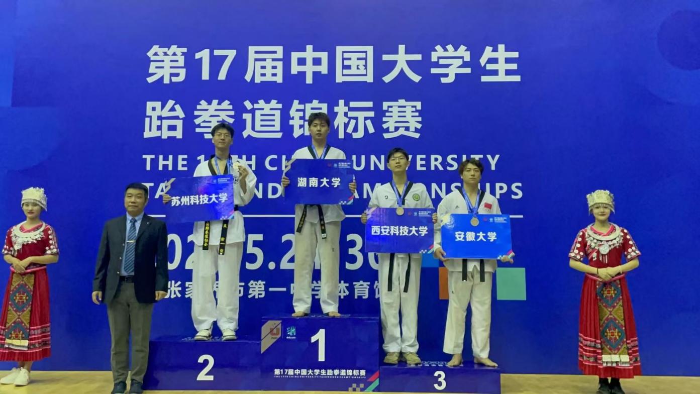 5月26日,第十七届全国大学生跆拳道锦标赛在张家界市第一中学体育馆开赛。于5月29日完赛,我院参赛选手发挥出色,脱颖而出。刘晓阳荣获男子甲组87kg第一名、冯刚荣获男子甲组58kg第三名、李贤明荣获男子甲组54kg第五名、徐睿荣获男子甲组87kg第五名。在团体赛中荣获男子甲组第一名。