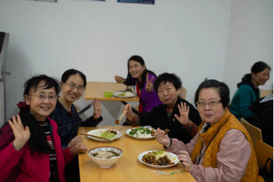 转眼已到晌午,师姐们前往四食堂(原女生宿舍食堂)就餐,看到熟悉的食堂位置,师姐们无不倍感亲切,但是食堂内部早已焕然一新,有了更丰富美味的菜品,更干净整洁的环境,在一丝陌生当中也感受到了由衷的欣慰。餐毕,师姐便在食堂门前回忆起曾经的宿舍布局,看到楼栋和当时的旧楼并列而站,也不仅感慨时过境迁。