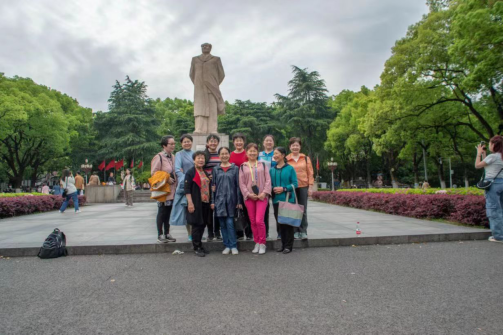 从岳麓书院离开后,师姐们来到东方红广场合影,随后前往小宝探花