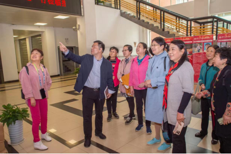 师姐们初至便受到了热情接待和问候,并在学院大楼门口合影留念。随后在贺书记的引领下,校友们共同参观了现在的机械院楼,观览了机械院优秀学生的光荣事迹及科研成就,参观了机械院富有创意的职工之家,切身感受到了机械院强烈的人文关怀与和谐氛围,无不对几十年来时过境迁的变化发出感慨与啧啧赞叹。参观机械院楼后,在六楼的图书室召开了会谈,由贺书记向校友阐述了这些年来湖大及机械院取得的成就和发生的变迁,校友们作为其中一部分历史的经历者,在会谈中展开了热烈的交流互动,甚至加入到这些历史与变化的讲述,现场热闹非凡,笑声愉悦。