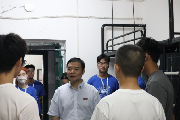 进入寝室,贺书记与同学们亲切的打招呼,了解同学们从哪里来,是如何过来的。贺书记还谈到同学们大学的计划与理想,同学们的回答也各不相同:保研,好好学习,做有趣的事,这些都是同学们的期望。书记对同学们的目标给予肯定,嘱咐新生们在大学还是以学习为主,同班助多交流,并提醒同学们为军训做好准备,注意防晒,多关注自己的身心健康,以后不管是学习上还是生活上的困难都可以向老师和学长学姐寻求帮助。新生对于贺书记的到来感到很开心,热情回应着老师们的关心。针对家庭困难以及偏远地区的同学,学院老师亲自探望并给予关心与慰问。