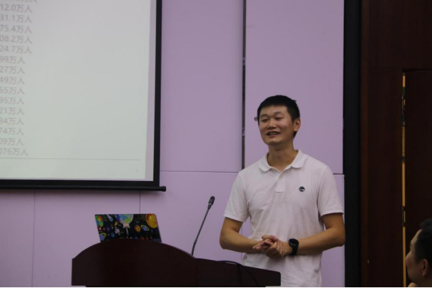 张坦探老师则以班级现状、新生班级见面会和个人的收获三个方面为切入点,与大家进行学生工作上的交流。张老师从“核心能力”、“社会需求”等多个方面分享了新生班级见面会的内容,并特别提到了自信和鼓励的的重要性。他认为面对班里不自信的孩子时,要积极给予他们鼓励,帮助他们建立自信,从而更好地在大学里学习与生活。