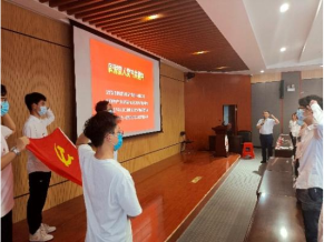 牢记入党初心,赓续红色血脉。在激昂的《国际歌》歌声中,新党员入党宣誓仪式正式开始。“我志愿加入中国共产党,拥护党的纲领,遵守党的章程……”,在贺迅同志的领誓下,全体党员均持立正姿势、面向党旗,举右手握拳过肩,庄严向党旗宣誓。铮铮誓言响彻会场,表达了新党员们对党的忠诚以及为共产主义奋斗终身的决心。