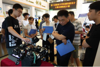 经过评委老师们激烈的探讨和认真评审,此次大赛评选出一等奖5件、二等奖5件、三等奖5件,获奖作品全部推荐参加湖南省第十届大学生机械创新设计大赛。各参赛项目代表上台领奖,并与评委老师们合影留念。最后,李孟仁书记上台致闭幕辞,他希望同学们能够以最优秀工程师的标准来约束自己,并以机创大赛为平台,激励自己向着更高、更广的舞台发展,为学院学科建设和个人发展注入持续不竭的动力。