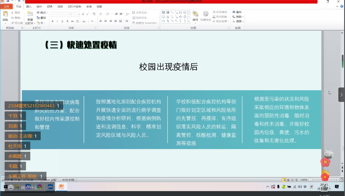 董主任首先介绍了现如今疫情防控的严峻形势,并解释了目前的防控政策和对同学们的具体要求。