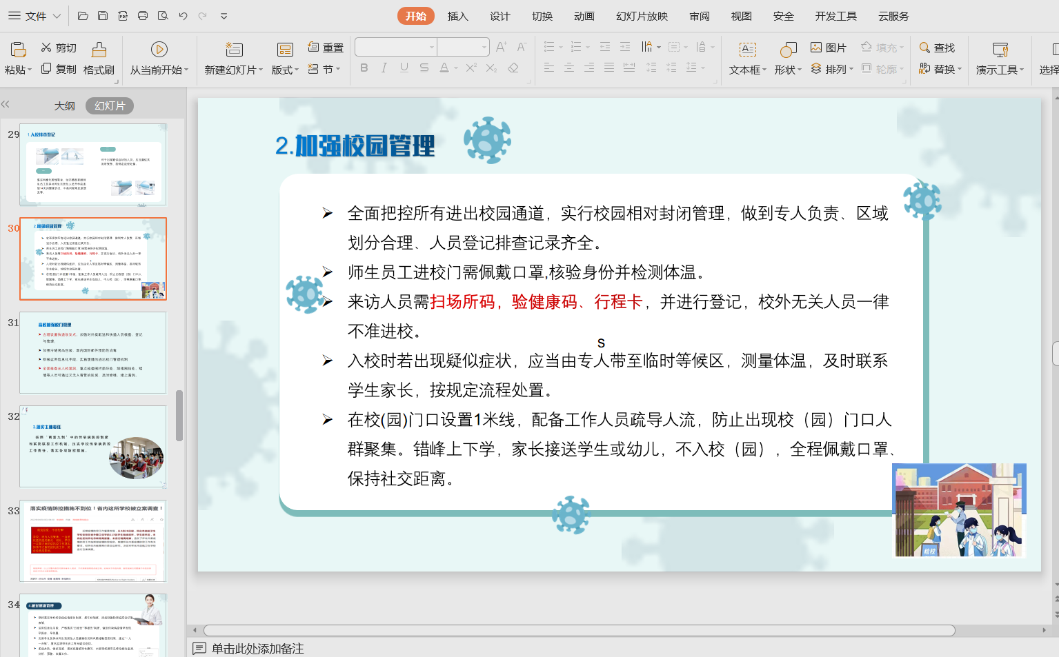 董志主任在解释上级政策要求的同时,也针对她在现实中观察到的具体情况提出了几点建议,如正确选择和佩戴口罩、关注遵守当地防疫政策等。最后,董主任强调了在特殊时期“做好师生员工人文关怀和服务保障”等工作的重要性。