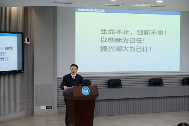 讲座伊始,陈根余教授以创新为引,从多维角度阐述了创新这个系统工程存在多方面的困难因素,在面对难题时,陈教授鼓励我们需要锁定目标,坚持不懈,实现重大创新。