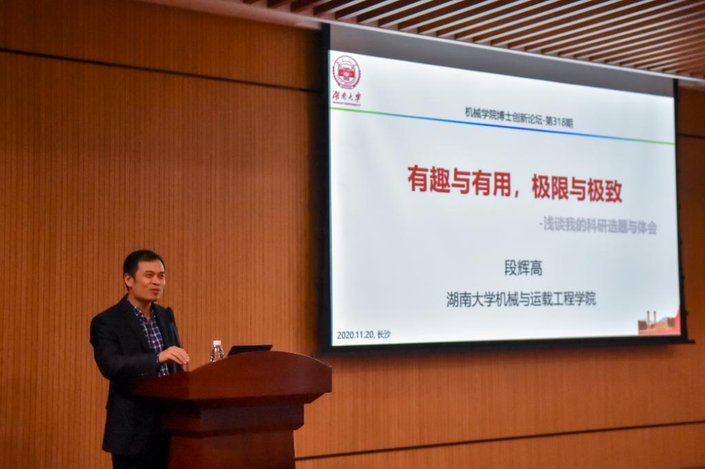 研究生会科研创新部承办的2020博士创新论坛系列讲座在院楼401报告厅顺利举办。主讲人段辉高教授以“有趣与有用,极限与极致”为主题,向同学们讲述自己的科研经历与心得体会。