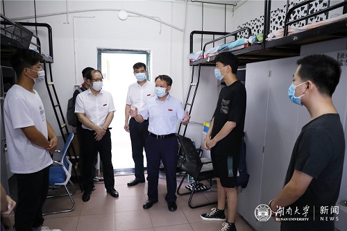 近日,在2020届毕业生离校之际,校长段献忠深入学生园区宿舍慰问欢送小宝探花 毕业生。