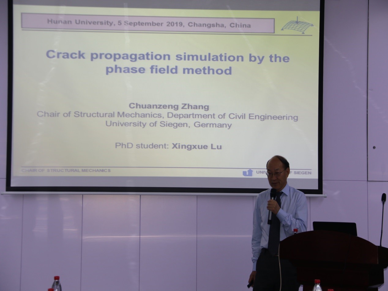 316报告厅作了题为《Crack propagation simulation by the phase field method》的报告,我院执行院长姜潮教授主持了报告会。