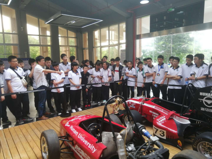 6月19日上午,湘潭凤凰中学学生参观了位于两山一湖的汽车车身先进设计制造国家重点实验室。实验室李彬博士接待了到访的同学们。同学们兴致勃勃,听着实验室李彬学长介绍了实验室的基本情况、发展历史和杰出的科研人才队伍。在参观实验室的同时不断的提问,李彬学长一一耐心解答。