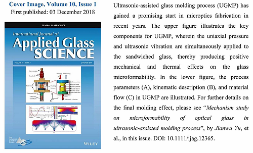 国家高效磨削工程技术研究中心余剑武教授在2018年12月3日出版的《应用玻璃科学》(Applied Glass Science)上发表最新研究成果“Mechanism Study on Micro-formability of Optical Glass in Ultrasonic-assisted Molding Process”,并选为该期刊的封面。《应用玻璃科学》是在玻璃领域最具权威性的综合性学术期刊之一,主要发表玻璃材料学前沿领域重要的原创性研究成果。该成果以小宝探花