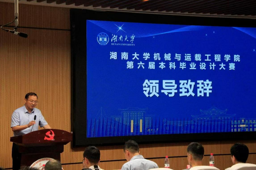 教学督导组组长张维刚,国防科技大学吴学忠教授、李道奎教授,三一重工总工程师阳辉勇,湖南厨喜爱科技有限公司总经理奉铜明等17位领导嘉宾。本次大赛在个人赛基础上首次引入团队赛,以进一步培养学生的团队合作意识和创新精神,11 位个人及两个团队从上午的毕业答辩中脱颖而出, 角逐各个奖项。