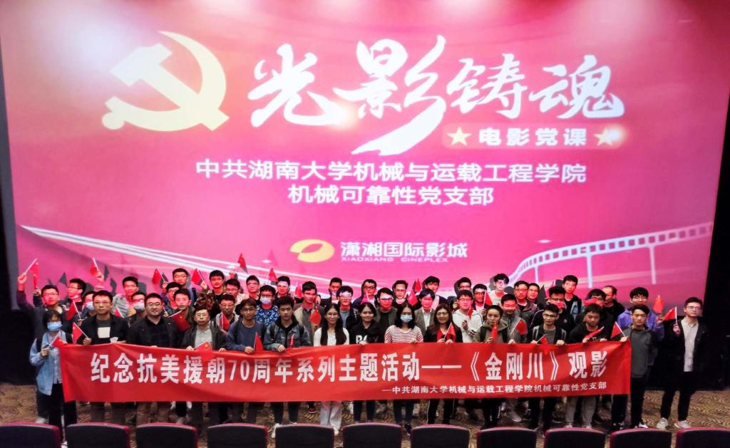 为纪念中国人民志愿军抗美援朝出国作战70周年,弘扬爱国主义精神和引导党员发扬优秀革命传统。10月29日,机械可靠性党支部组织全体党员在潇湘国际影城观看了爱国电影《金刚川》,影片以1950年中国人民志愿军跨过鸭绿江抗美援朝为背景,讲述了志愿军战士们在物资匮乏、武装悬殊的情况下,不断抵御敌机狂轰滥炸,以血肉之躯一次次修补战火中的木桥,最终架起一条“人桥”成功让增援部队抵达金城的英雄事迹。展现了中国人民志愿军无所畏惧的勇敢拼搏精神、有血有肉的爱国情怀,以及殊死拼搏的忠心赤胆。